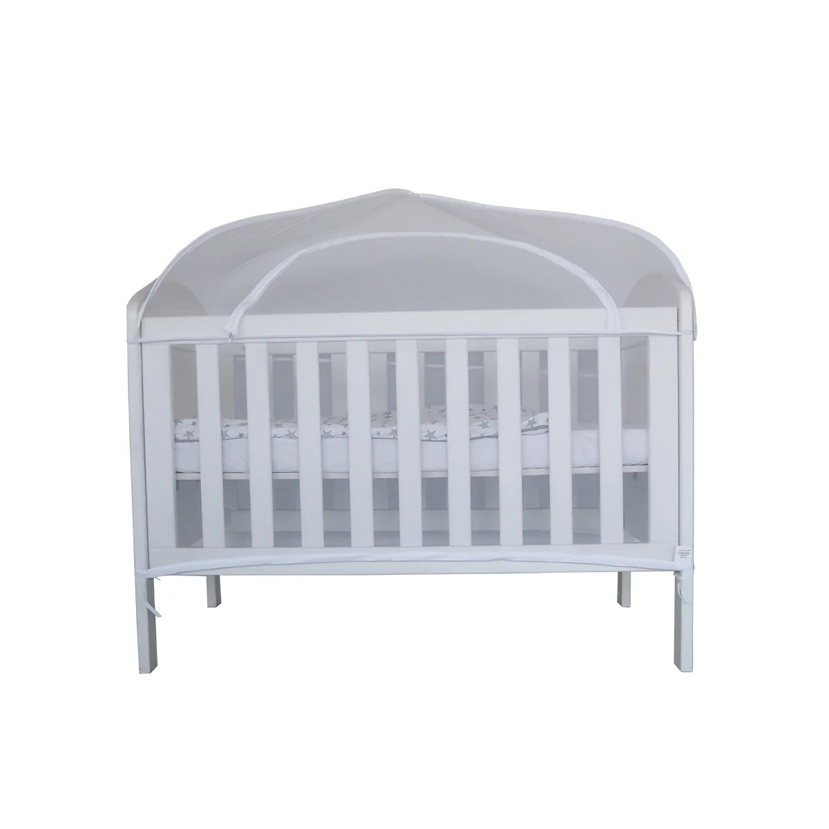 Dome-shaped Mozzi Net with zip-open window for easy access to baby, fine mesh fabric ensures visibility and ventilation and offers complete protection against mosquitoes and other irritating insects.